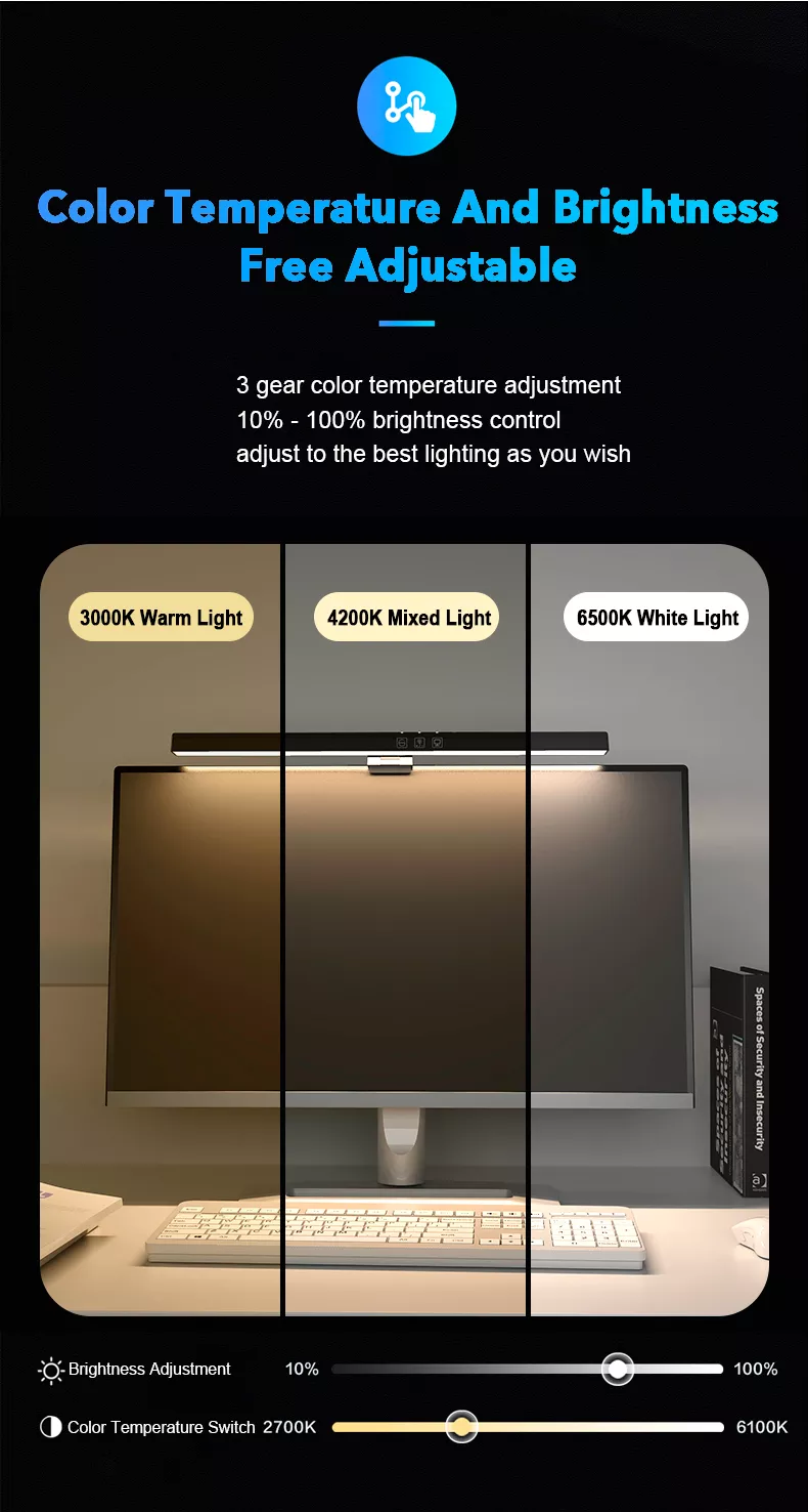 This 40cm LED screen light for computers features an RGB backlight, providing eye protection while creating a vibrant and immersive atmosphere.