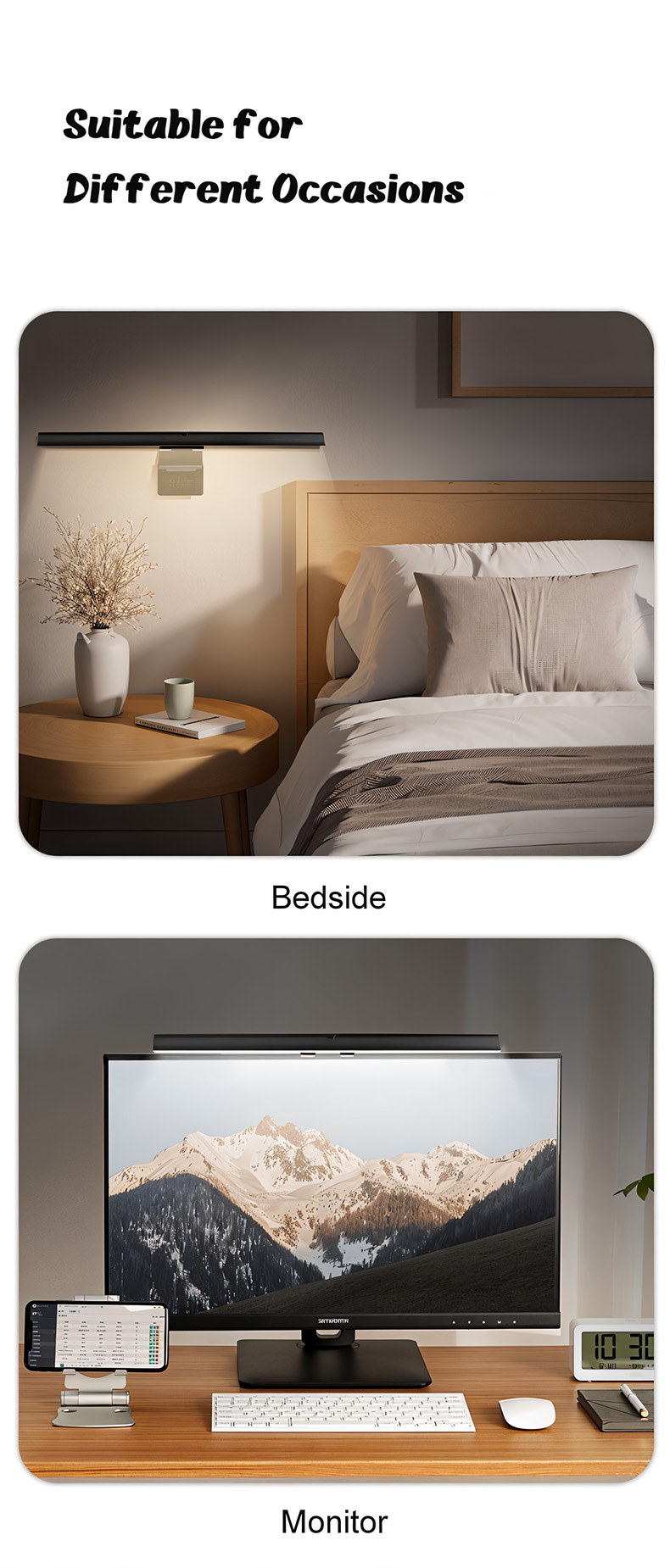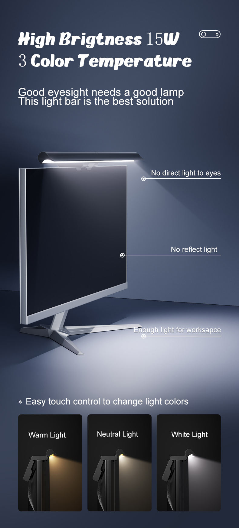 This wireless laptop and desktop monitor light bar offers greater convenience and space-saving design, helping to relieve eye strain and reduce stress for better eye protection